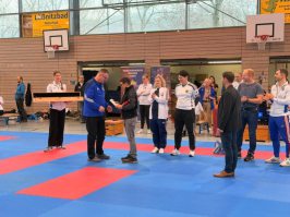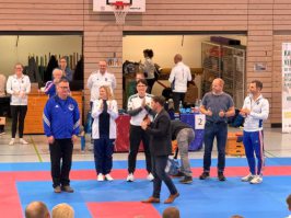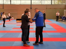 Die Dojoleiter*innen haben ihm ein Schwert überreicht. Mike war mit großem Engagement 25 Jahre als Landesreferent für Wado-Ryu in Sachsen tätig. Darüberhinaus war er jehrzehntelang auf allen Ebenen als Kampfrichter unterwegs. Wir danken Mike für seine engagierte, gewissenhafte, zuverlässige Arbeit und wünschen ihm alles Gute. Sein Nachfolger als Landesreferent wird am 01.01.2026 sein Amt antreten.